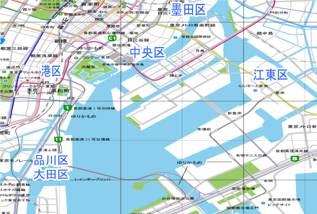 港区・品川区・大田区・中央区・墨田区・江東区の水辺エリア